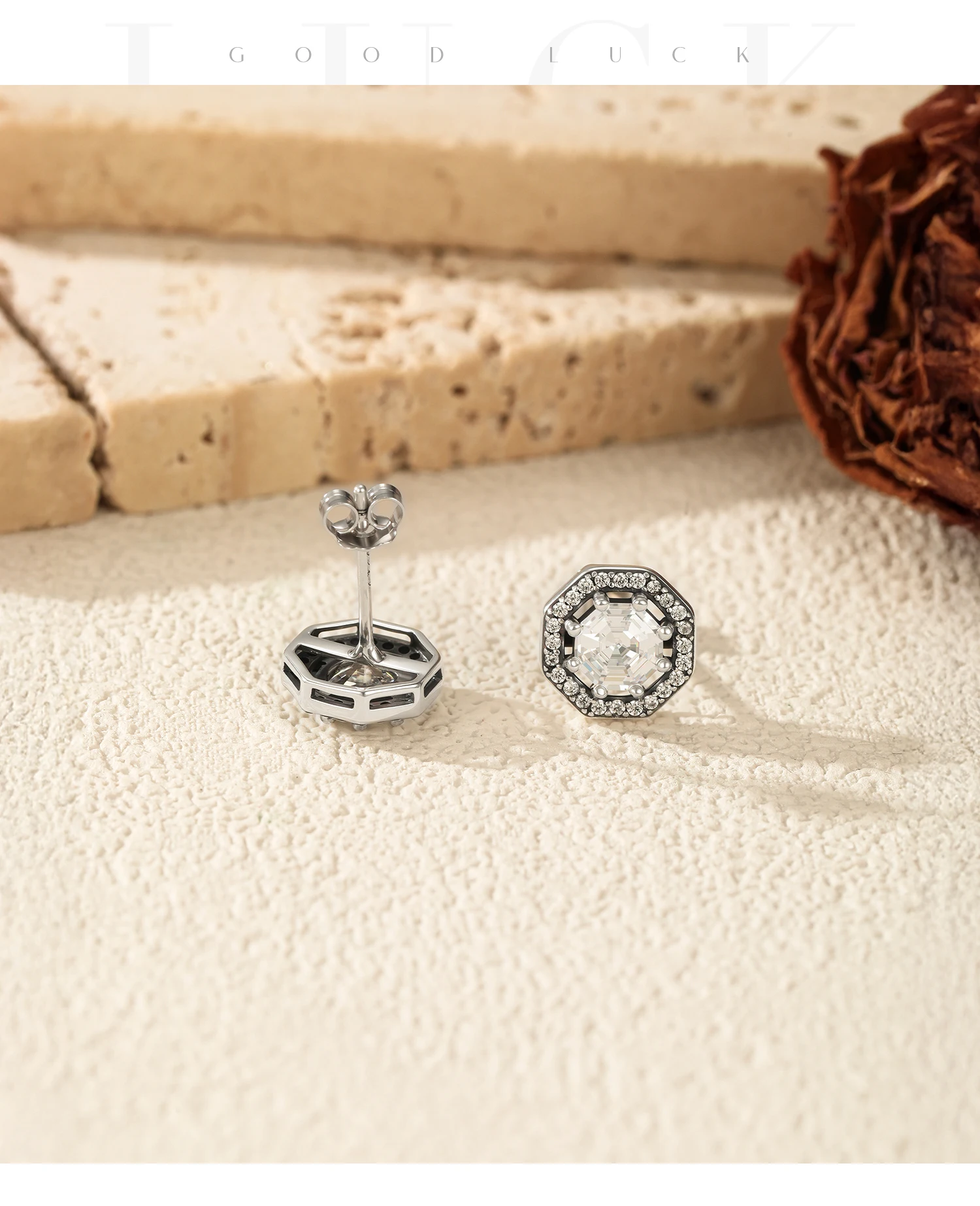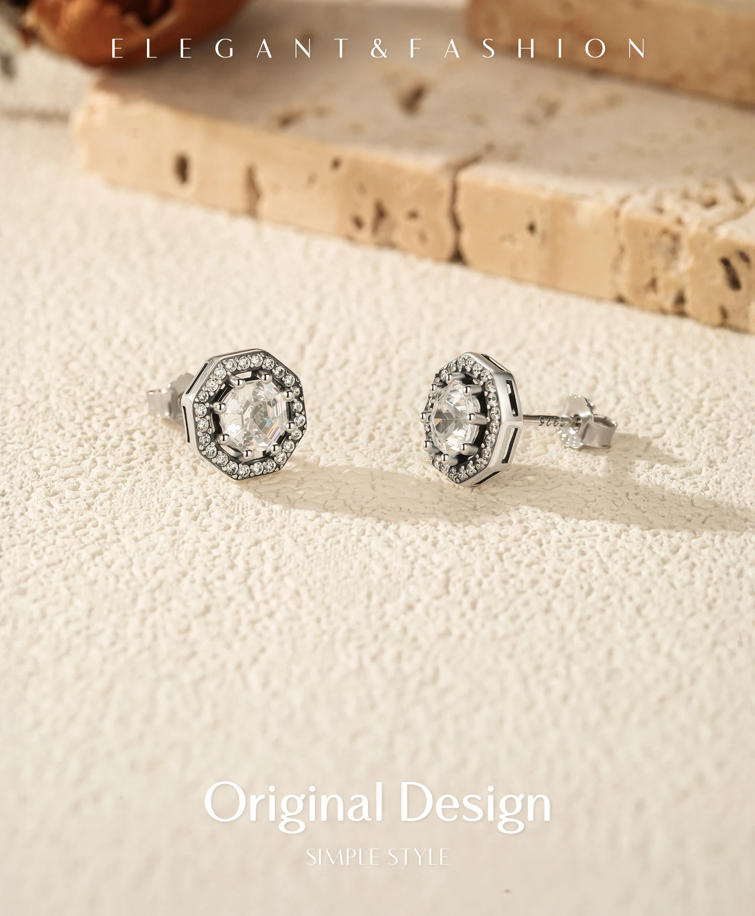 925 Sterling Silver Octagon Emerald Cut CZ Stud Earrings Vintage Daily Sparkling Ear Stud For Women Vacation Fine Jewelry