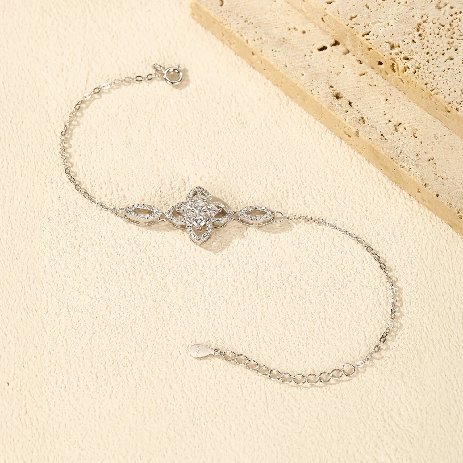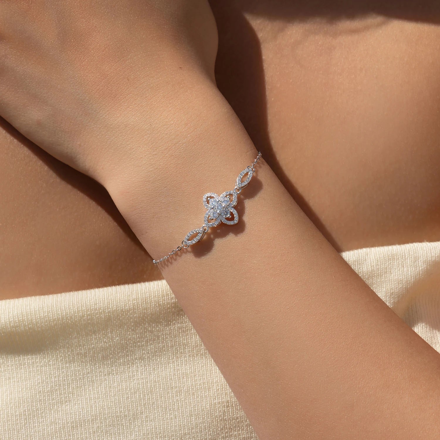 Sterling Silver Exquisite Four Leaf Clover Flower Charm Bracelet